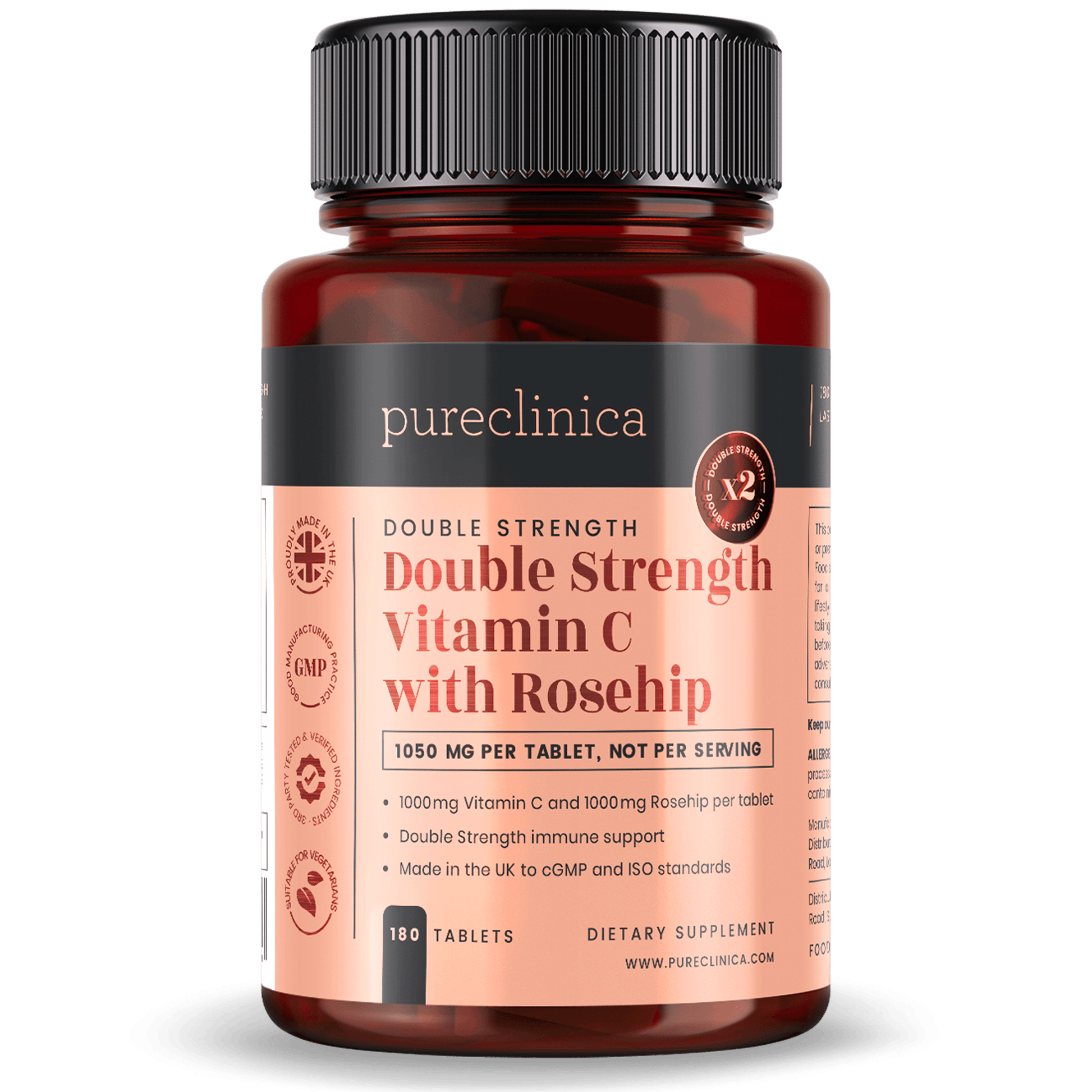 While synthetic Vitamin C is both safe and effective, many individuals prefer a natural source. We have developed Double Strength Vitamin C with Rosehip extract, creating a potent blend of a high-dose synthetic vitamin C and naturally sourced vitamin C from Rosehip extract.