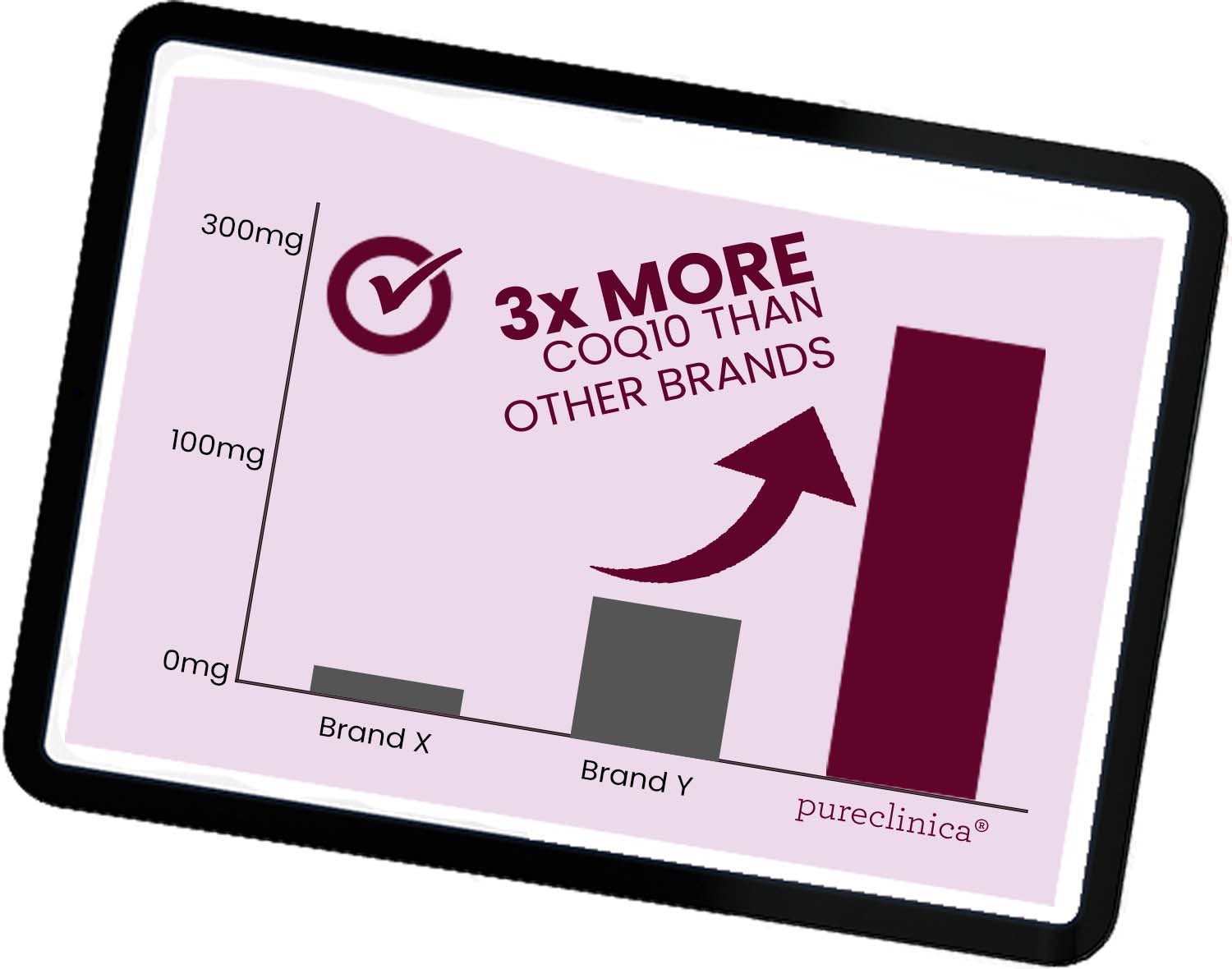 • Triple the amount of CoQ10 per tablet compared to most other leading brands.