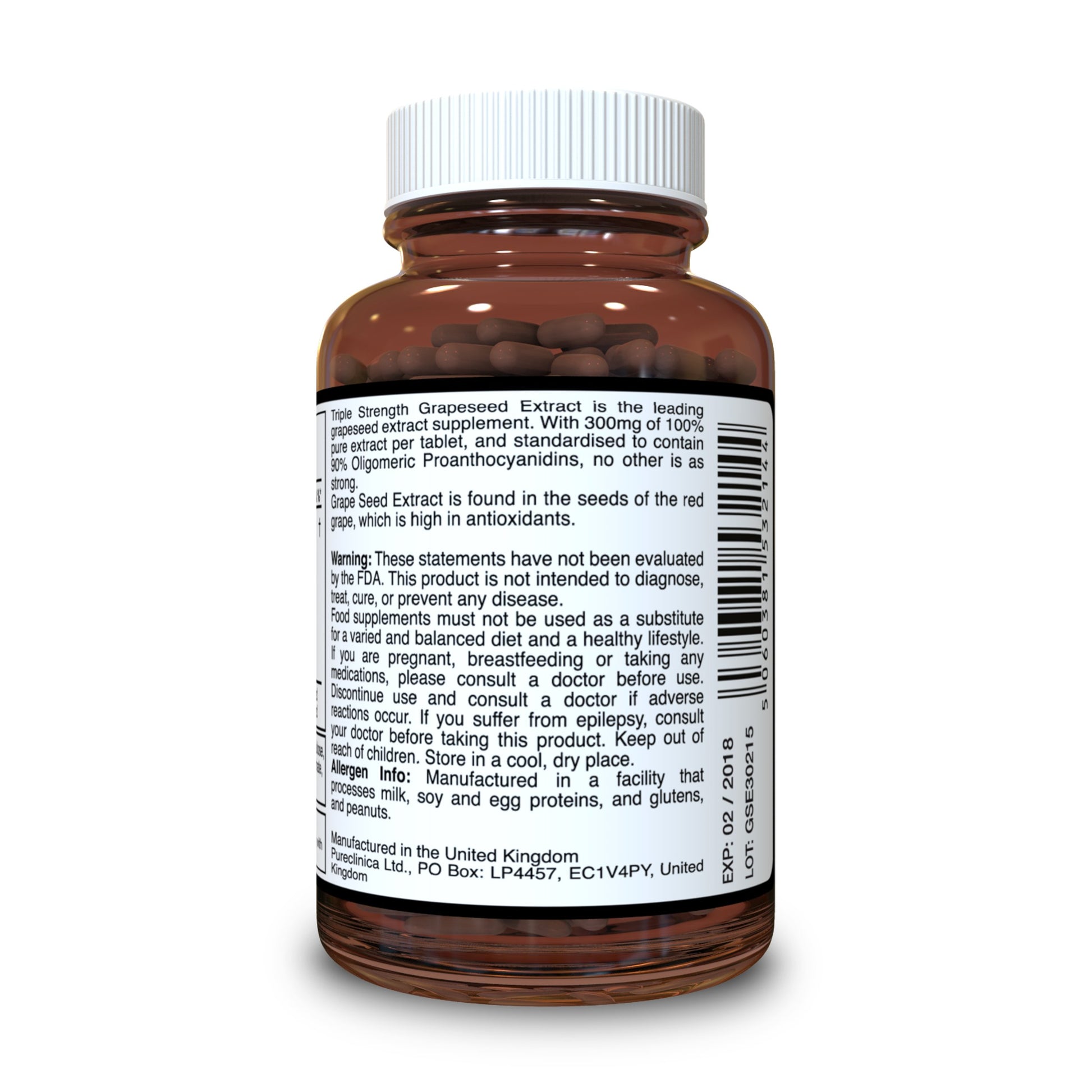 Each tablet contains 300mg of Grapeseed extract which is three times more than most other leading brands' Grapeseed supplements.