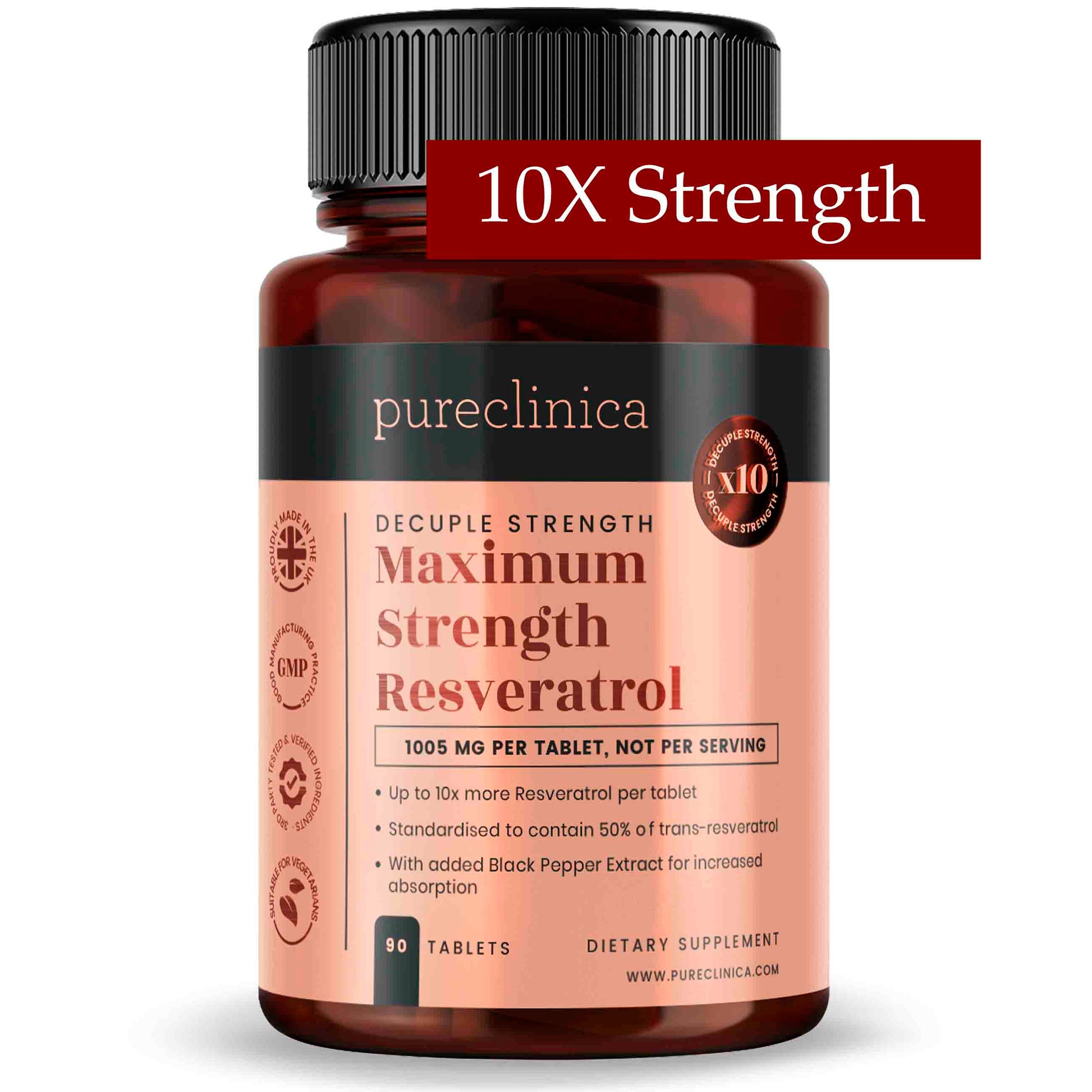 Weighing in at a whopping 1000mg of Resveratrol per tablet, Maximum Strength Resveratrol contains up to 10x the quantity of active ingredient compared to regular strength resveratrol supplements.