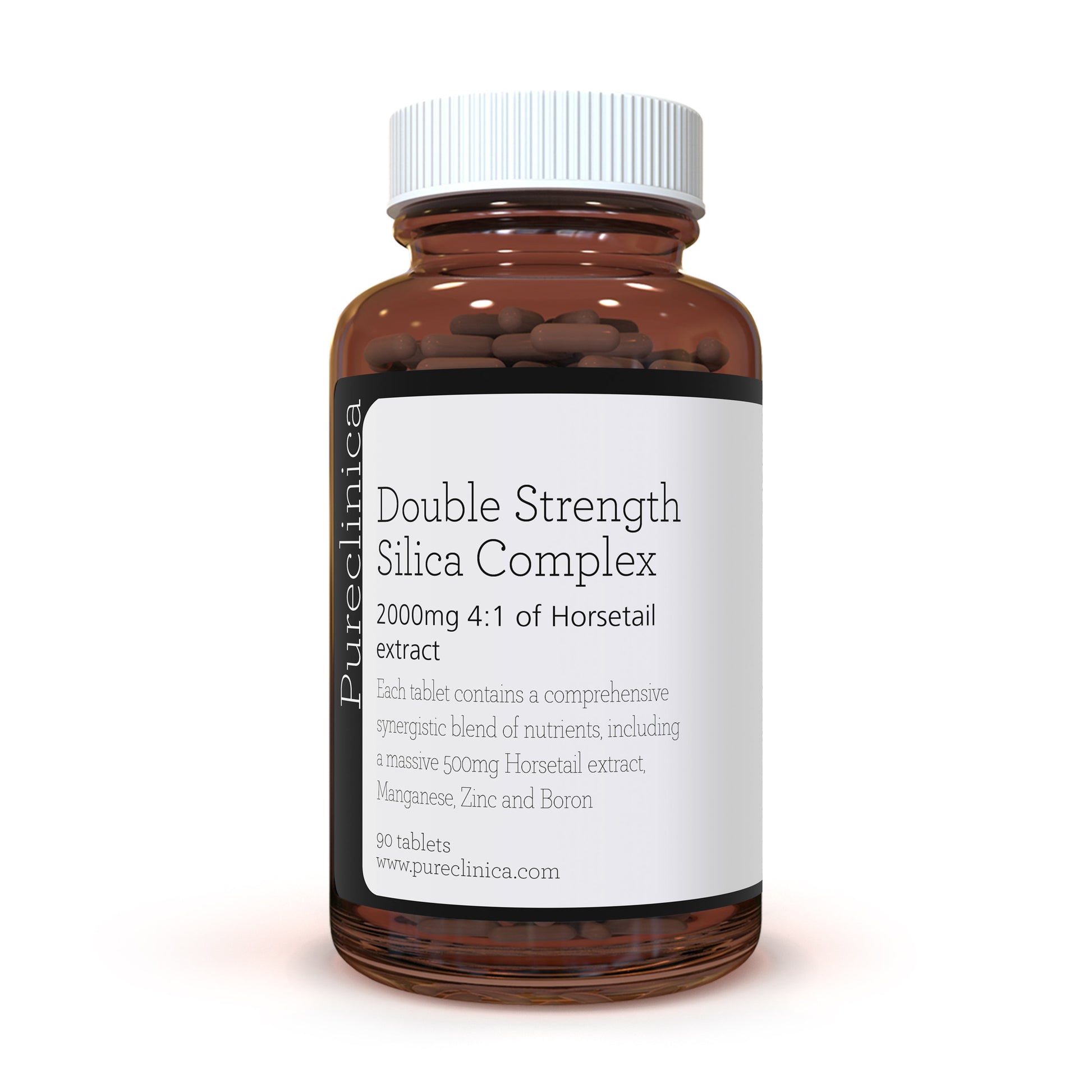 Double Strength Silica Complex contains 200mg of natural silica, derived from horsetail extract - twice the quantity of this important nutrient compared to most other silica supplements.