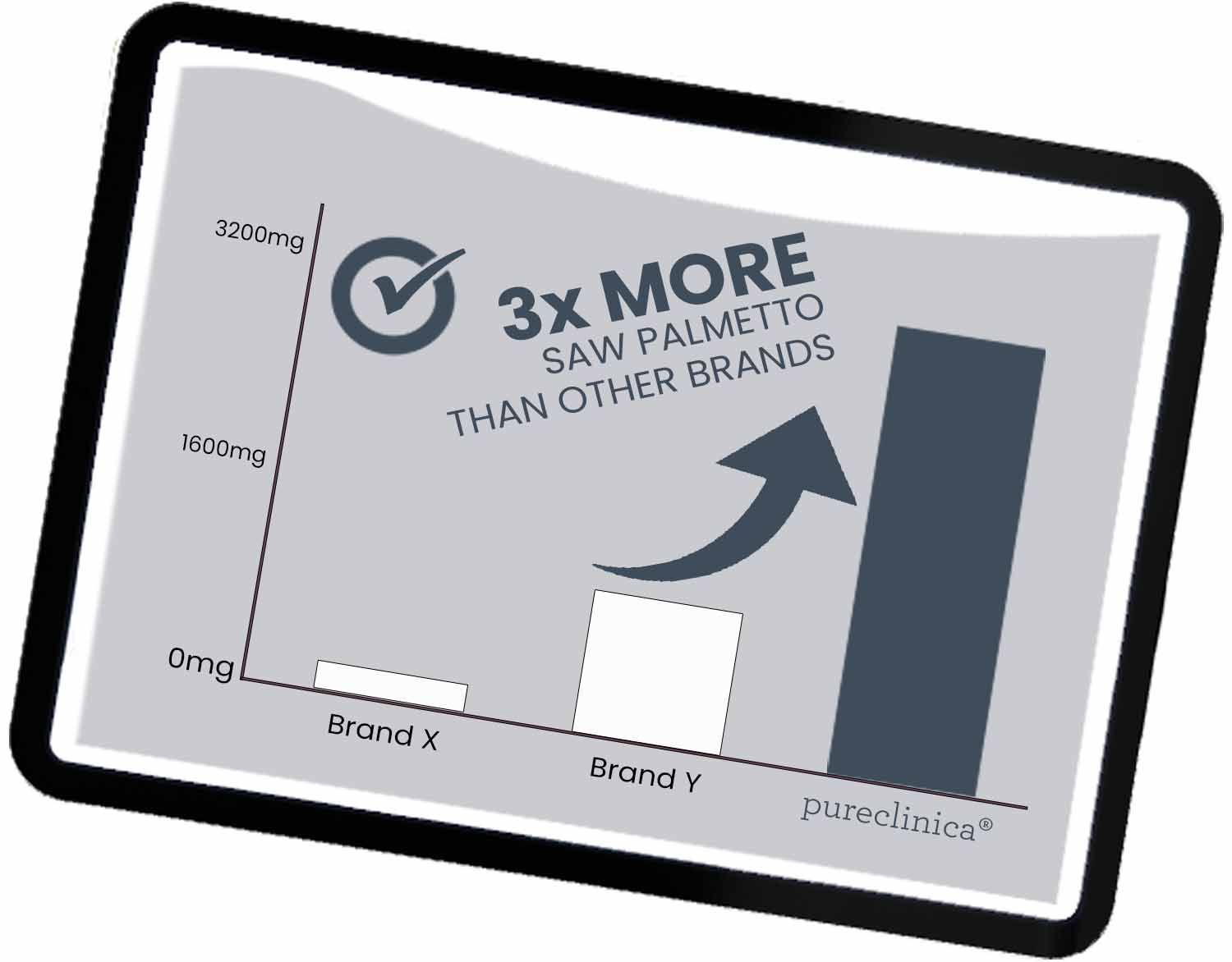 Our Triple Strength Saw Palmetto gives you a complete dosage in just one tablet, making it a simpler and more cost-effective option.