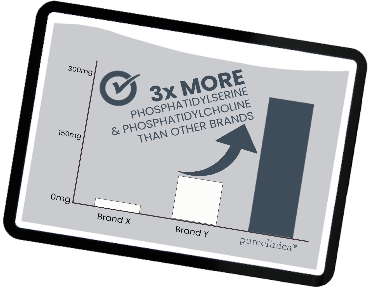 • A 3X strength solution providing 300mg of Phosphatidylserine and 50mg of Phosphatidylcholine per tablet