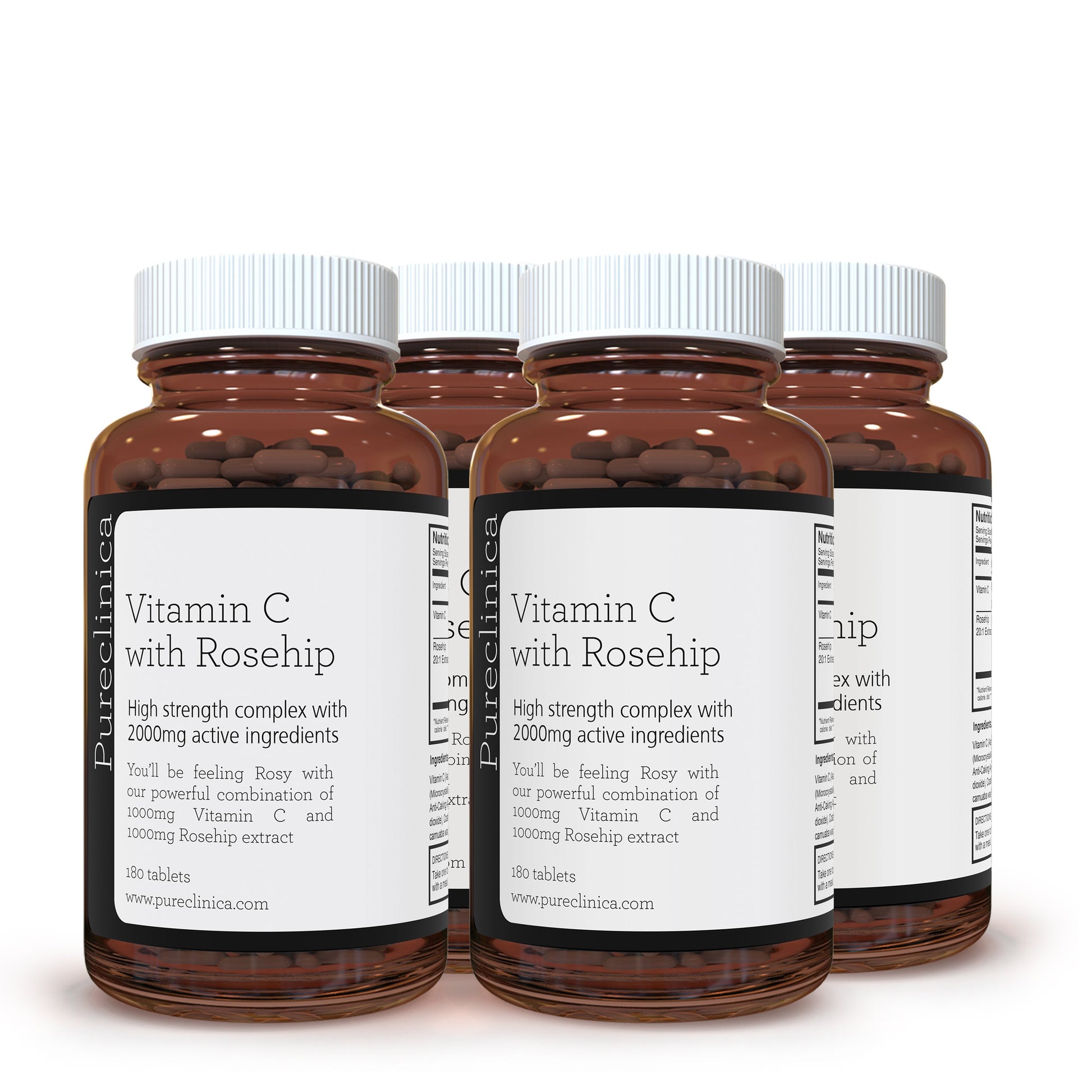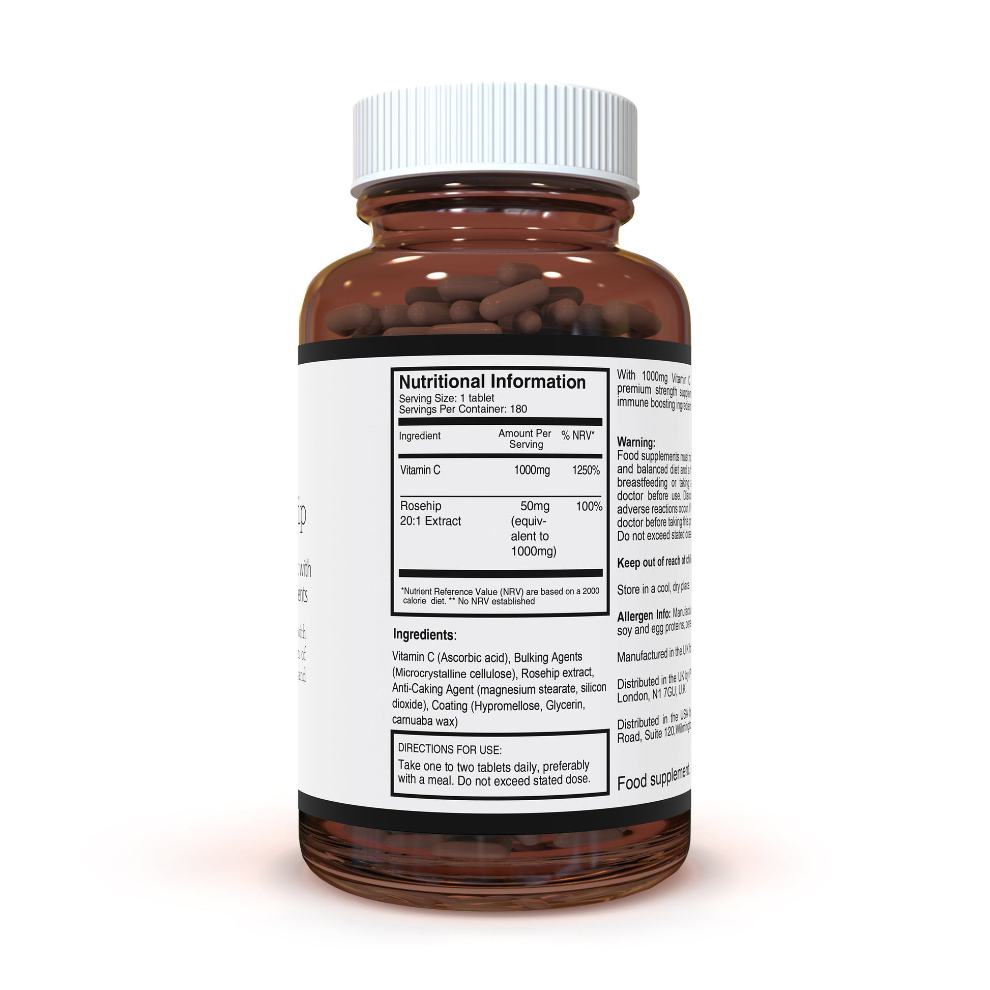 Made with 1000mg of pure ascorbic acid (vitamin C), and fortified with 1000mg of Rosehip providing a natural boost.