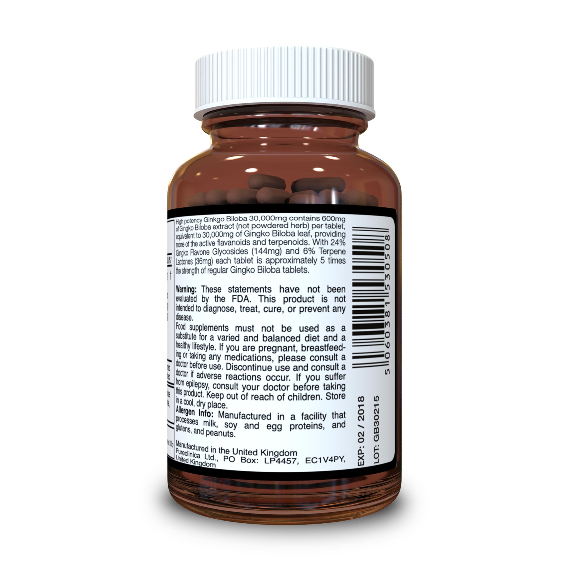 • Provides a higher strength solution with 30,000mg Ginkgo Biloba per tablet.