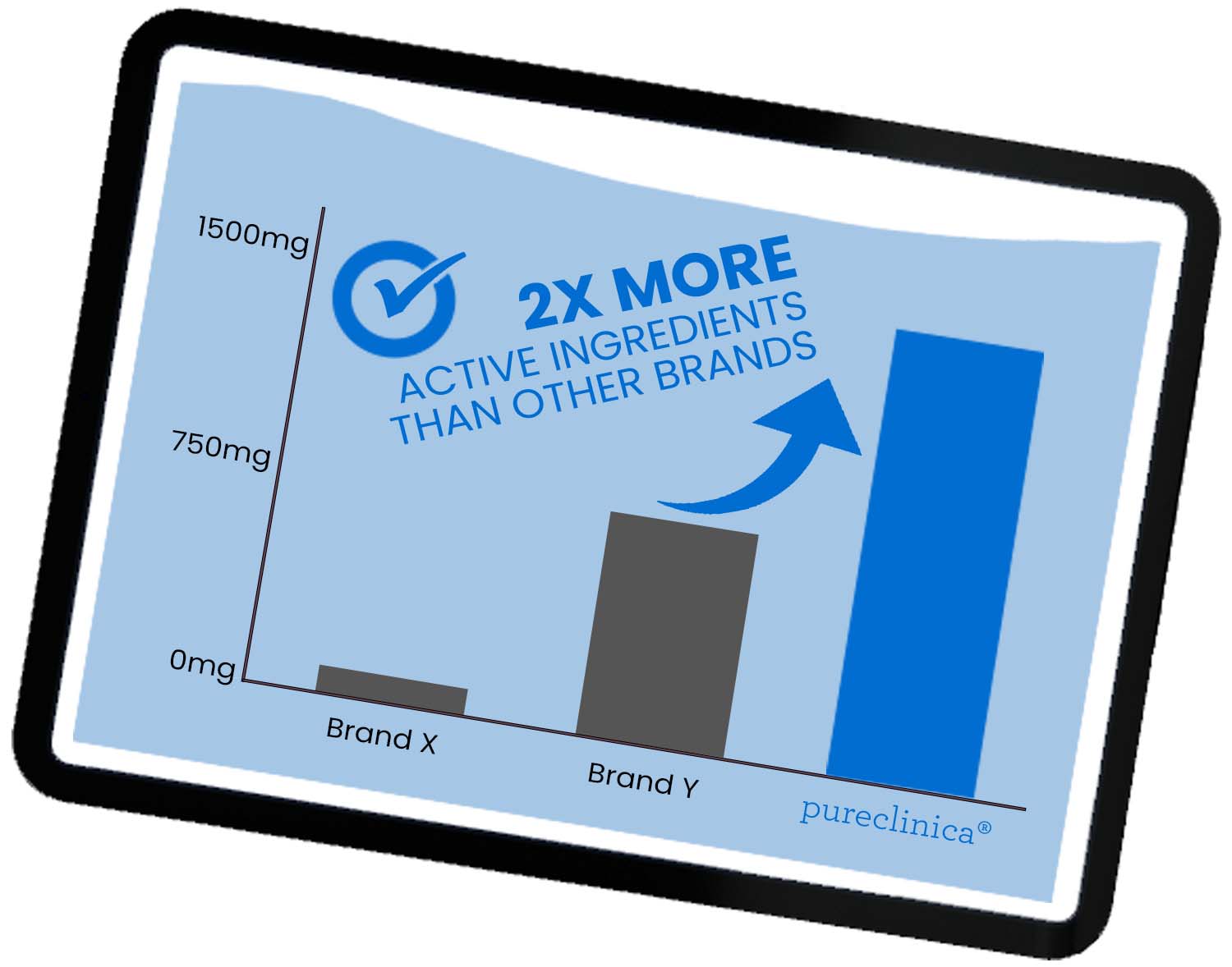 Our annual audit of leading competitors ensures we pack 2 times more active ingredients in every tablet compared to regular Glucosamine and Chondroitin.